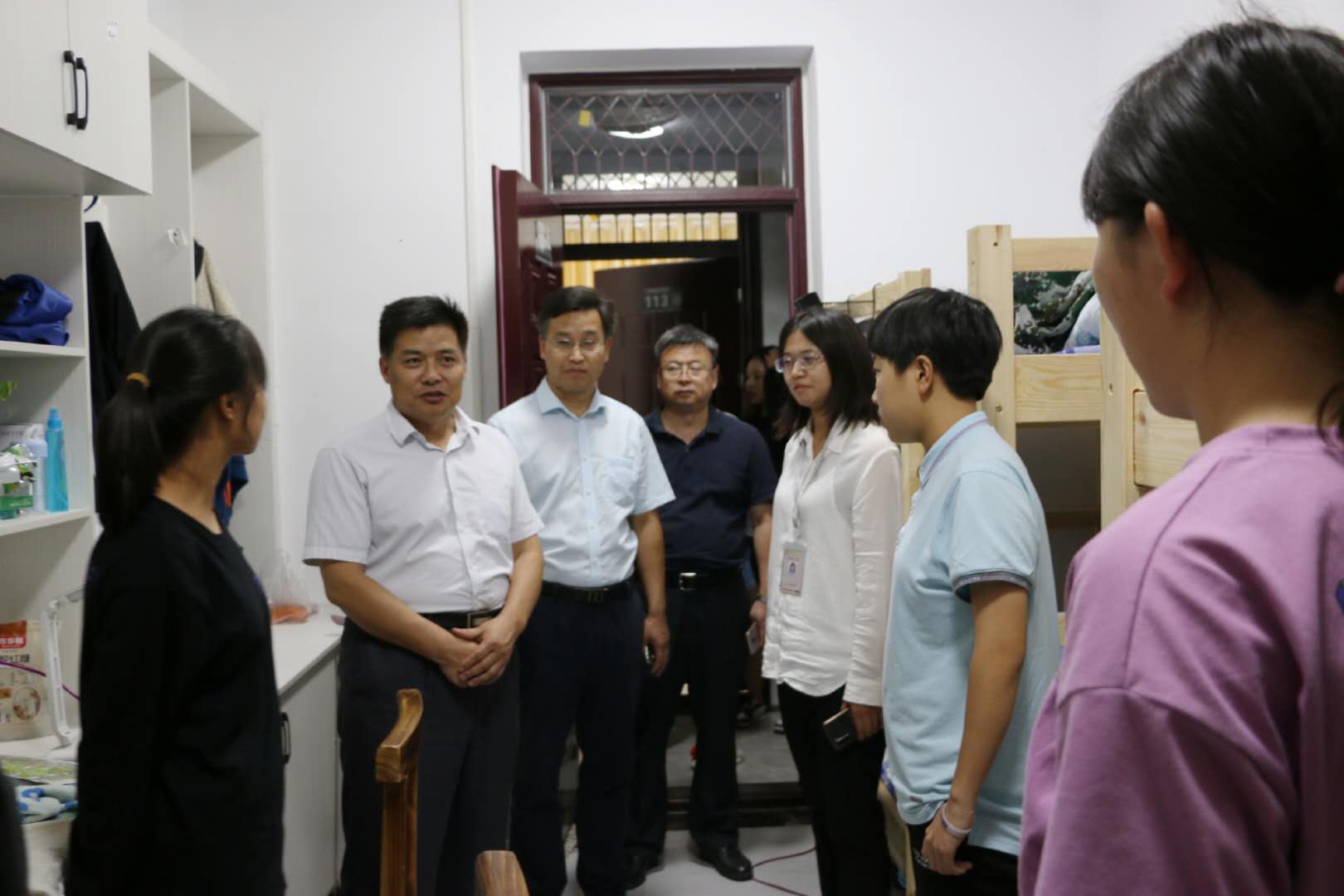 学院领导走进宿舍亲切询问学生的家乡、爱好、专业成绩、宿舍生活的适应情况。密切关注宿舍的基础设施和居住环境,从空调的使用到宿舍门锁的安装,每一处细节都让新生们温暖至心。在了解同学们的基本情况后,学院领导向新生们讲述了学院的发展近况和院系的新变化,鼓励同学们在体院未来的学习生活中追求卓越,积极进取,树立明确的人生目标和职业生涯规划,努力成为拔尖的曲园人才。